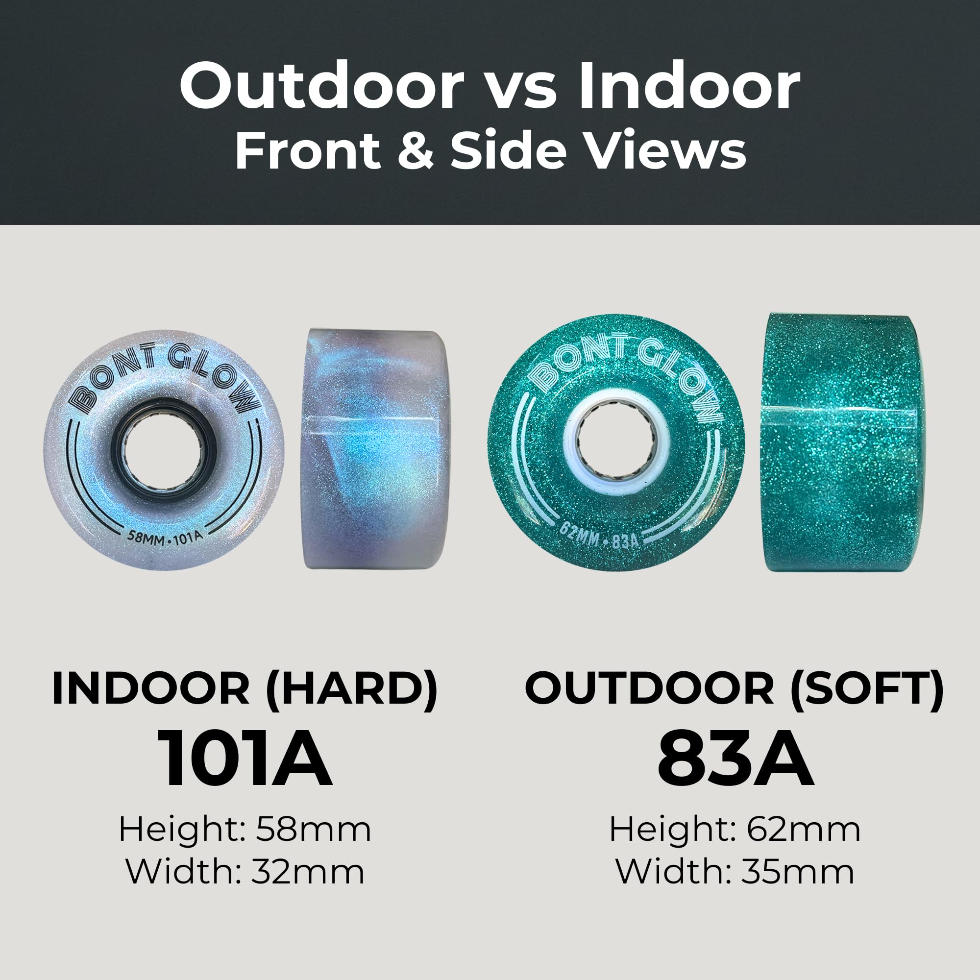 - Hybrid Indoor/Outdoor Urethane 101A – crafted from 83A hardness urethane to absorb rough surfaces outdoors and perform well indoors, delivering smooth rolls and reliable grip.
